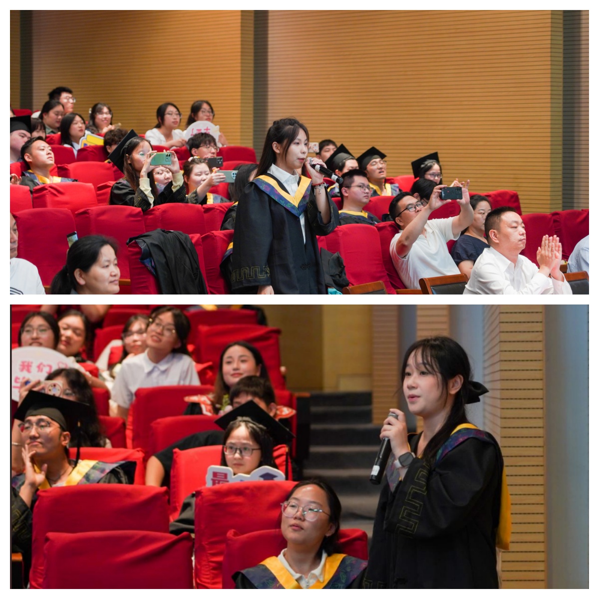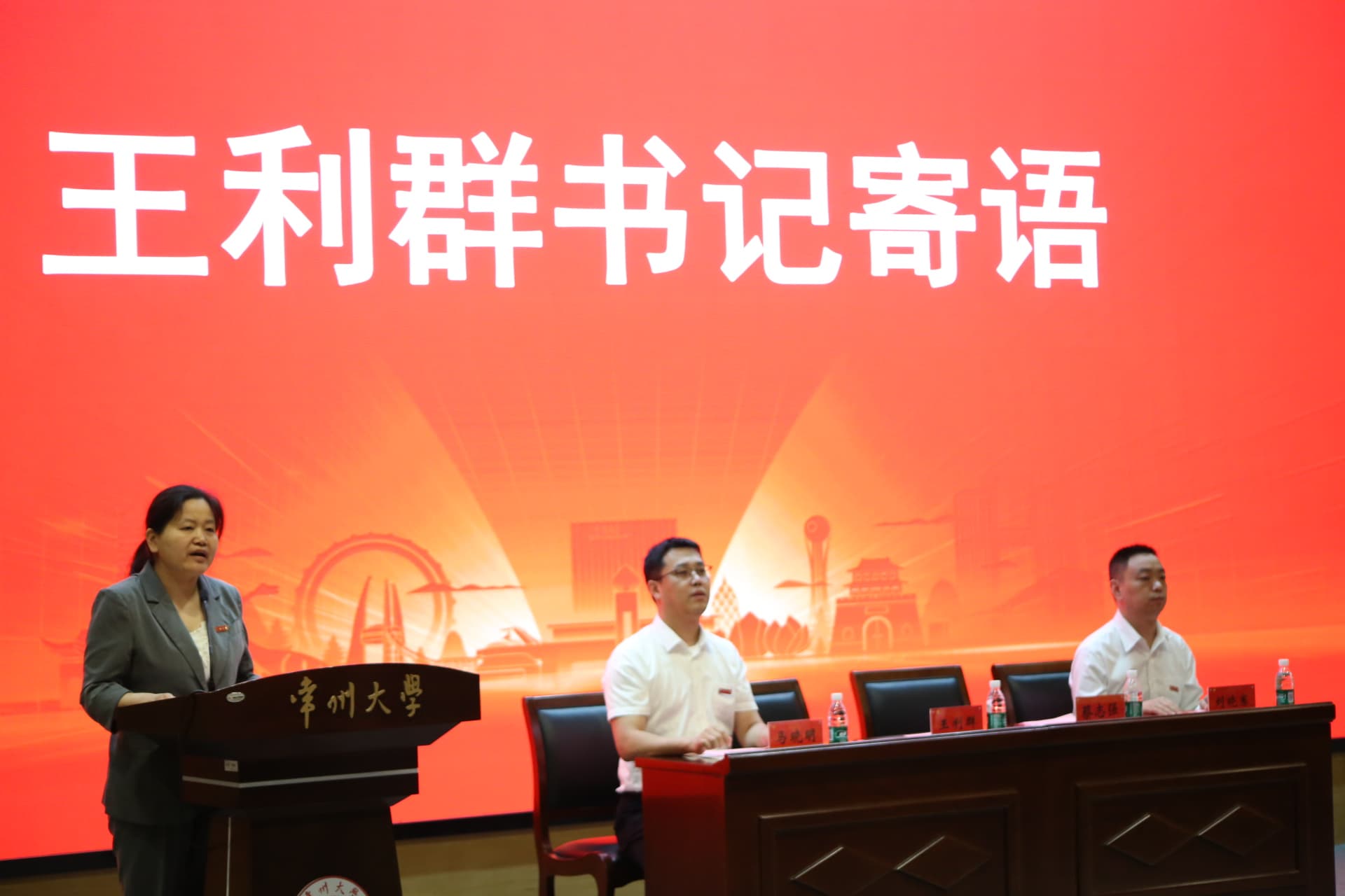 在书记寄语环节,王利群书记首先向全体毕业生和毕业生家长表示祝贺,向全体教师的辛勤付出致以感谢,然后从“远志 精工 博爱”的院训出发,勉励毕业生做“把远志种进泥土”的行动派,用脚步实现梦想;做“把精工刻进基因”的追梦人,把精益求精的态度,变成最硬核的职场铠甲;做“让博爱温暖世界”的发光体,永远心存善意。最后王书记表示常大药学院永远牵挂大家,欢迎大家常回来看看!