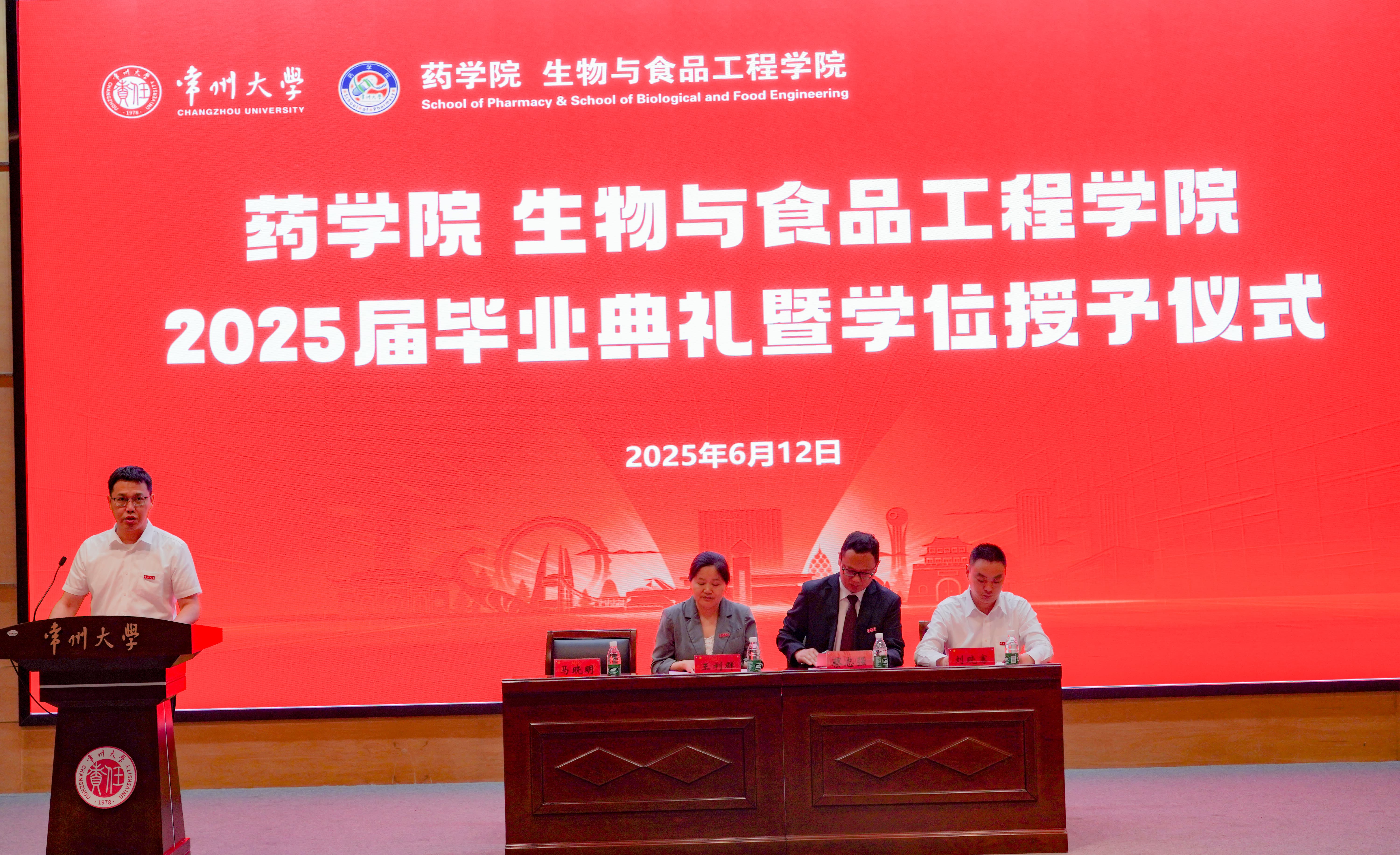 6月12日上午,药学院 生物与食品工程学院于文彰楼报告厅隆重举办2025届学生毕业典礼暨学位授予仪式。院党委书记王利群,院长蔡志强,副院长刘晓骞,院长助理马晓明,各系主任、毕业班班主任、辅导员、毕业班同学及家长代表出席典礼,本次典礼由院长助理马晓明主持。