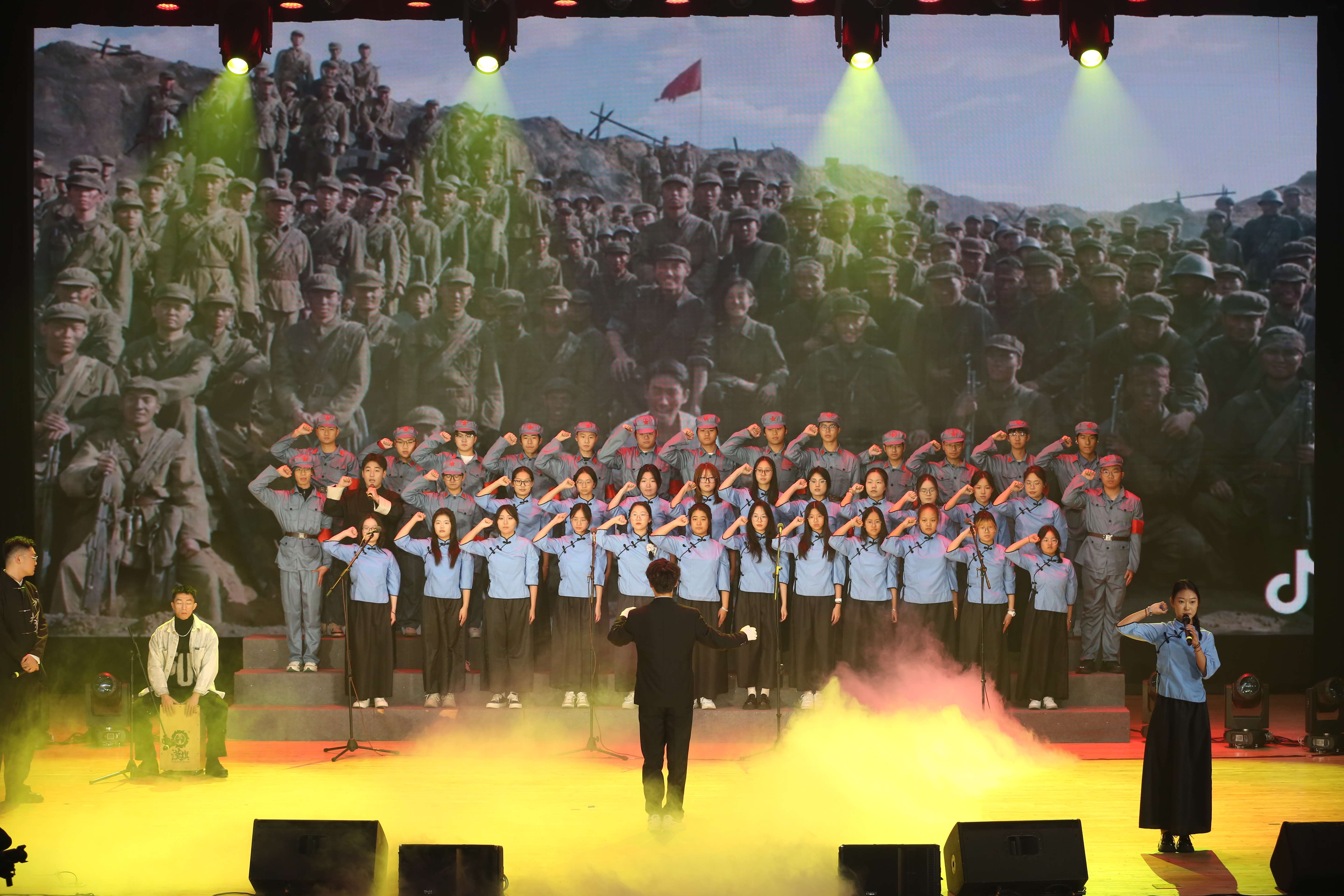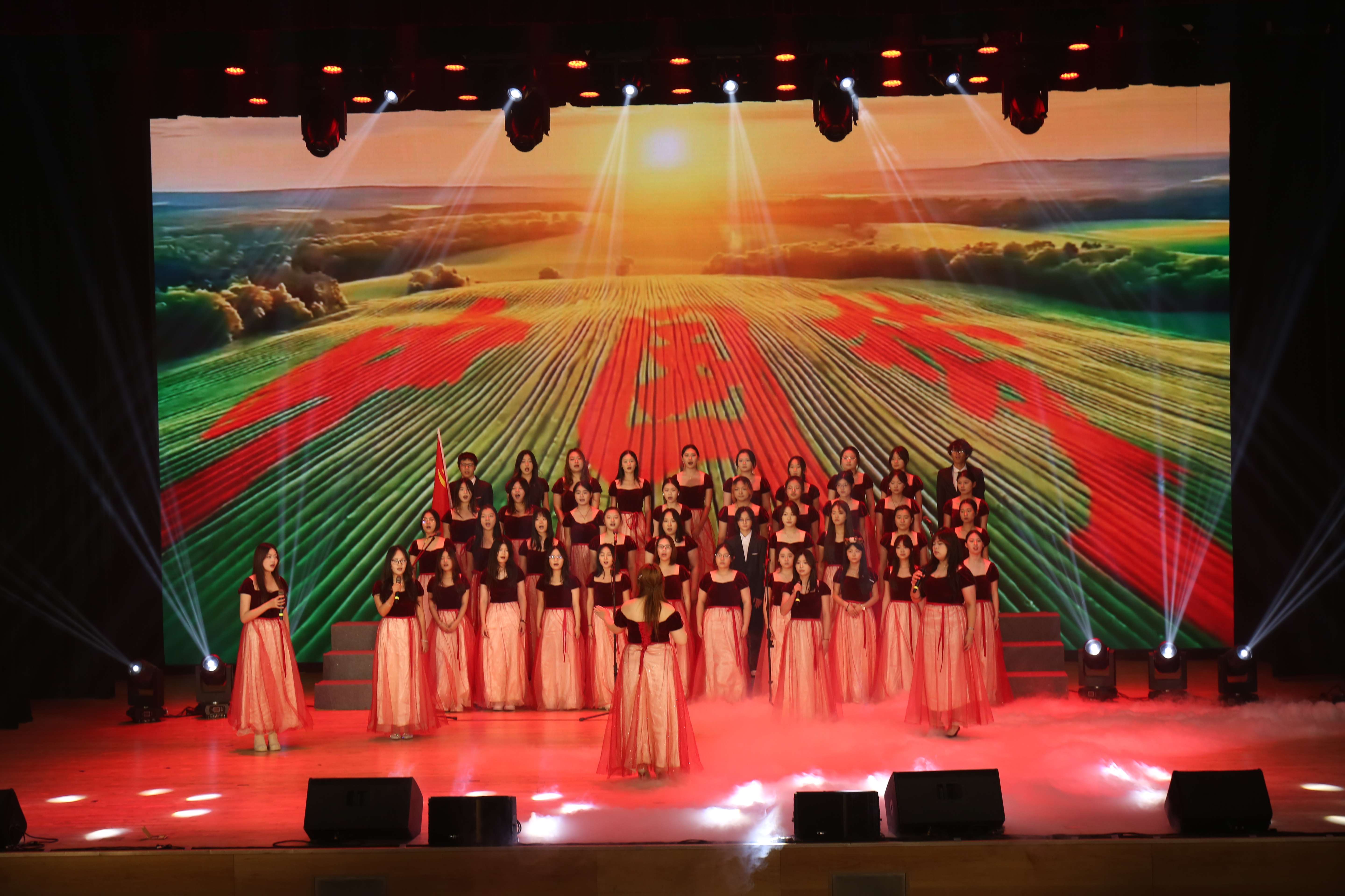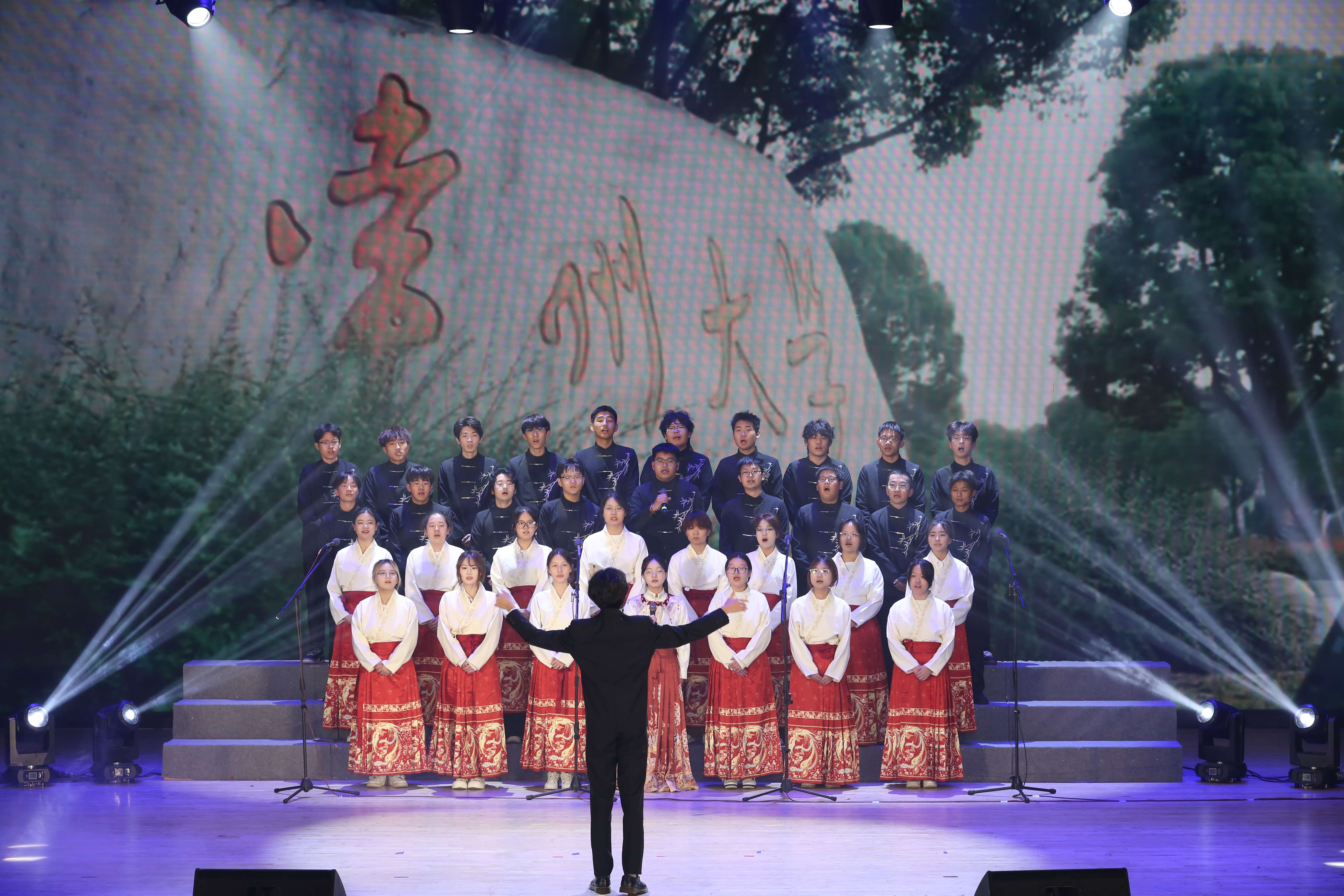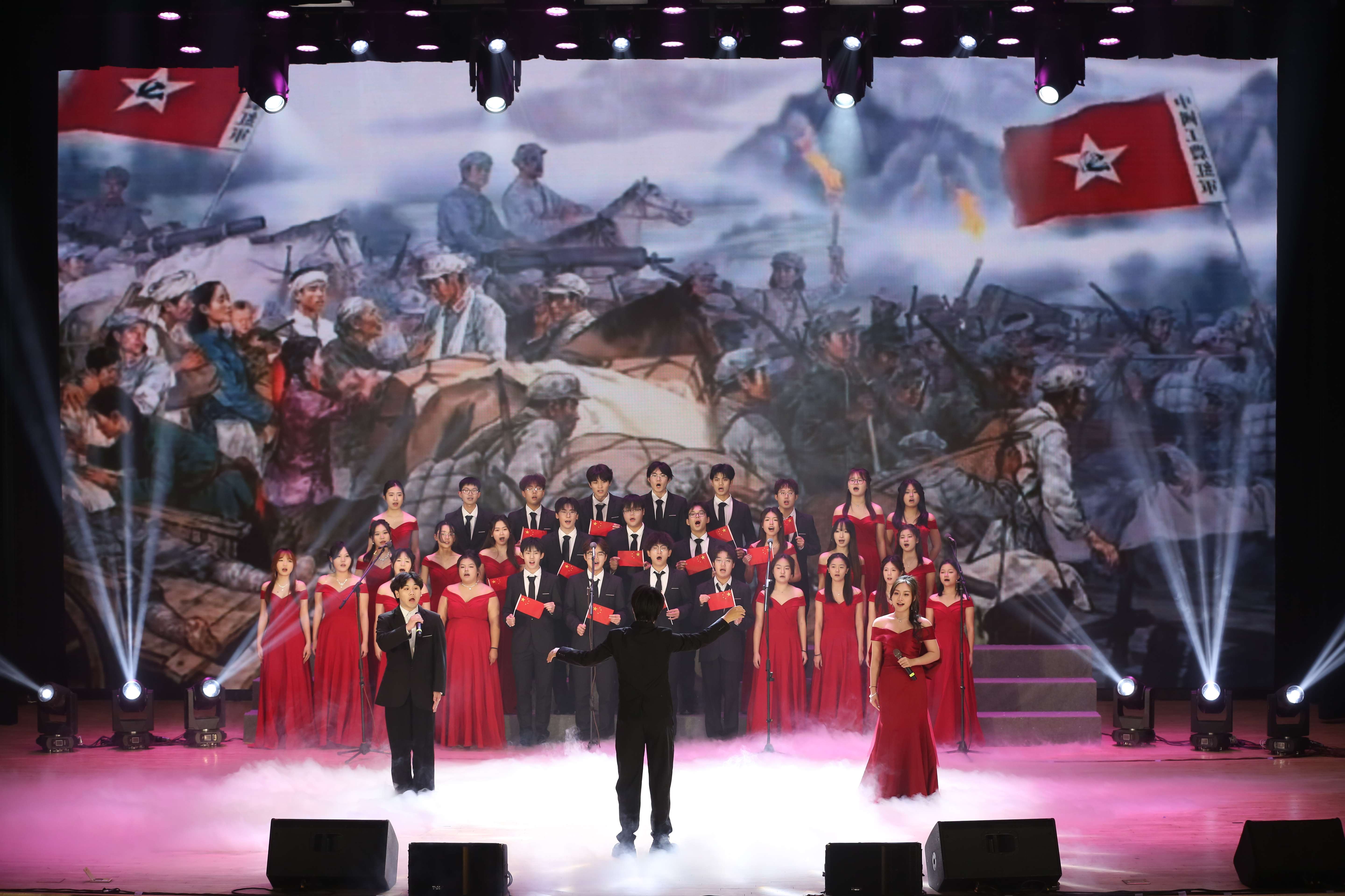 决赛在江苏银行常州分行的合唱《我们都是追梦人》中拉开序幕,演唱者们以昂扬姿态点燃现场氛围。比赛以“热血映山河,矢志耀征程”为主题,以“破晓”“燎原”“争锋”“筑梦”四个篇章串联起中国共产党自成立以来波澜壮阔的历史进程。来自12个学院的代表队以饱满的精神状态和嘹亮的歌声,展现中国共产党带领各族人民攻坚克难、开拓前进的奋斗历程,以及青年在民族复兴中的历史责任与担当,唤起现场师生的红色记忆,诠释深厚的家国情怀。常州市军队离休退休干部保障服务中心的三十余位老干部带来《游击队歌》《祖国不会忘记》,歌声铿锵有力、饱含赤诚,将现场氛围推向高潮。最终,音乐与影视学院、商学院 刘国钧管理学院荣获本次比赛一等奖。