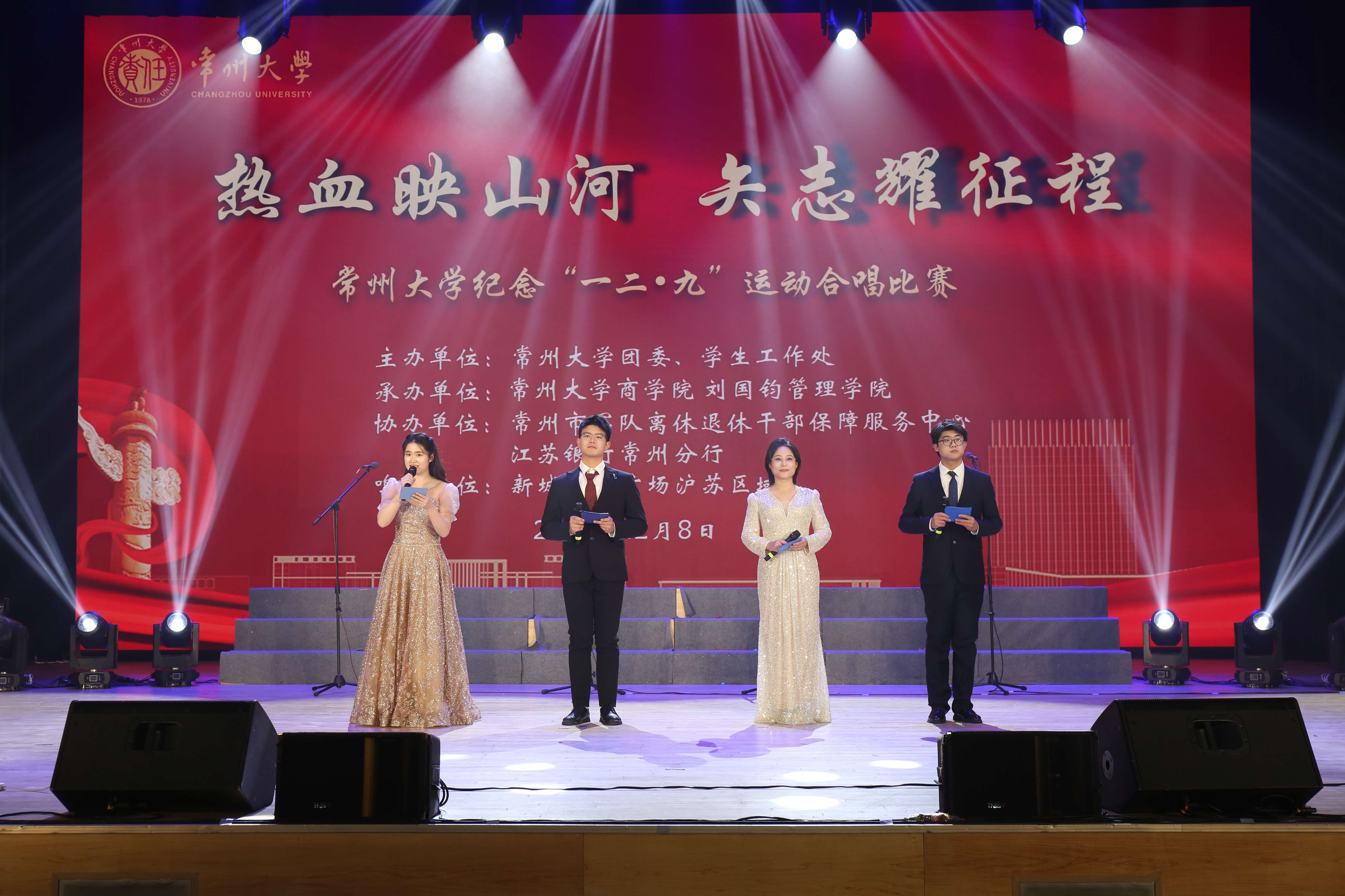 为纪念“一二·九”运动90周年、中国人民抗日战争暨世界反法西斯战争胜利80周年,12月8日,由常州大学团委、学生工作处主办,商学院 刘国钧管理学院承办,常州市军队离休退休干部保障服务中心、江苏银行常州分行协办的“热血映山河,矢志耀征程”——常州大学纪念“一二·九”运动合唱比赛决赛在西太湖校区立艺楼大礼堂举行。校关工委副主任袁能,校团委书记仲杉,党委学生工作部、党委人民武装部、学生工作处副处长杨松,商学院党委书记龙涌澜,校团委艺术教育中心办公室主任葛酉旖,赵元任音乐与戏剧学院教师汪笑怡,常州市军队离休退休干部保障服务中心党委书记、主任沈春静,副书记、副主任金燕,纪委书记张悦,新城商管沪苏区域公司行政人事副总监王天闻出席活动。部分学院的党委副书记、团委书记、团工作负责人以及学生代表共同参与决赛活动。